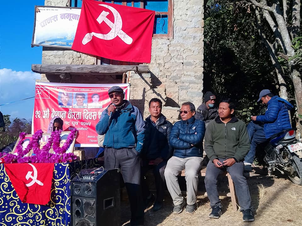 पार्टीका जिल्ला सदस्य जवानसिंहको अध्यक्षतामा भएको कार्यक्रममा बोल्दै प्रमुख अतिथि समेत रहेका नेता प्रवेशले वेथानमा बगेको रगतलाई खेर जान नदिने र क.तीर्थ गौतम, क.फत्तेबहादुर स्माइली र क.दिलमाया बम्जनको सपना साकार गरी छाड्ने प्रतिबद्धतासहित बर्तमान सन्दर्भमा राष्ट्रिय स्वाधीनता रक्षाको प्रश्न जटील बन्दै गएको बेलामा सम्पूर्ण देशभक्त र क्रान्तिकारी जनसमुदाय मिल्नुको विकल्प नरहेको कुरा औल्याएका थिए ।