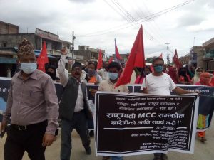नेकपा (क्रान्तिकारी माओवादी) लगायत १० दलीय मोर्चाले बाँकेको खजुरा गाउँपालिकाको खजुरा बजारमा एमसीसी खारेजको मागमा संयुक्त बिरोध कार्यक्रम सम्पन्न गरेकोछ । उक्त बिरोध कार्यक्रम विरोध रयालीकासाथ सम्पन्न गरिएकोछ । विरोध रयाली दुर्गामन्दीरचोक परिक्रमा गर्दै बजारमा रहेको पेट्रोल पम्प हुँदै बाँकेको खजुरा बजारमा पुगेर विरोधसभामा परिणत भएको थियो ।