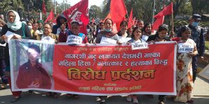 अखिल नेपाल महिला संघ, अखिल नेपाल महिला संघ(क्रान्तिकारी), अखिल नेपाल महिला संघ क्रान्तिकारी, वैज्ञानिक समाजवादी महिला संगठन नेपाल, अखिल नेपाल महिला युनियन र नेपाल महिला फेडरेशनको संयुक्त महिला संघर्ष समितिको आयोजनामा आज काठमान्डौको शान्तिबाटिका रत्नपार्कबाट सुरु भएको विरोध जुलुर्स भोटाहिटी, असन, इन्द्रचोक हुंदै हनुमान ढोका अगाडिको डवलीमा पुगी आमसभामा परिणत भएको थियो ।