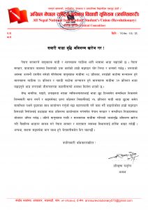 यसरी यात्रुबाहक गाडी र मालबहाक गाडीमा गरिएको भाडावृद्धि अविलम्ब खारेज गरी वैज्ञानिक भाडादर कायम गर्न नेपाल सरकार र यातायात व्यवस्था विभागलाई अखिल (क्रान्तिकारी)ले हार्दिक आग्रह गर्दै प्रेसविज्ञप्ति निम्नअनुसारको प्रेसविज्ञप्ति जारी गरेको छ –