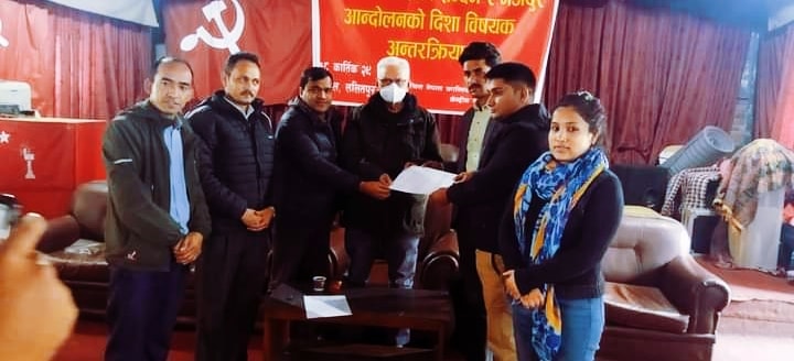 आन्दोलनरत विद्यार्थी संगठन सम्बद्ध पार्टी नेतृत्वहरुलाई ज्ञापन पत्र बुझाउने कार्यक्रम अनुसार शुक्रबार नेकपा (क्रान्तिकारी माओवादी)को नेतृत्वलाई ज्ञापन पत्र बुझाइएको छ ।