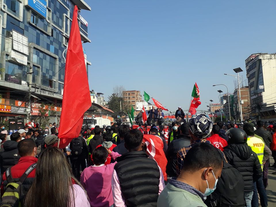 काठमाडौं । नेकपा (क्रान्तिकारी माओवादी), नेकपा (विप्लव), नेकपा (मसाल), देशभक्त जनगणतान्त्रिक मोर्चा, नेपाल, नेकपा (ऋषि कट्टेल), वैज्ञानिक समाजवादी कम्युनिस्ट पार्टी, नेपाल र नेकपा (माओवादी केन्द्र समाजवादी) र राष्ट्रिय जनमोर्चाको संयुक्त आयोजनामा माइतीघरदेखि नयाँ बानेश्वर संसद भवनअगाडिसम्म विशाल विरोध प्रदर्शन सम्पन्न भएको छ ।