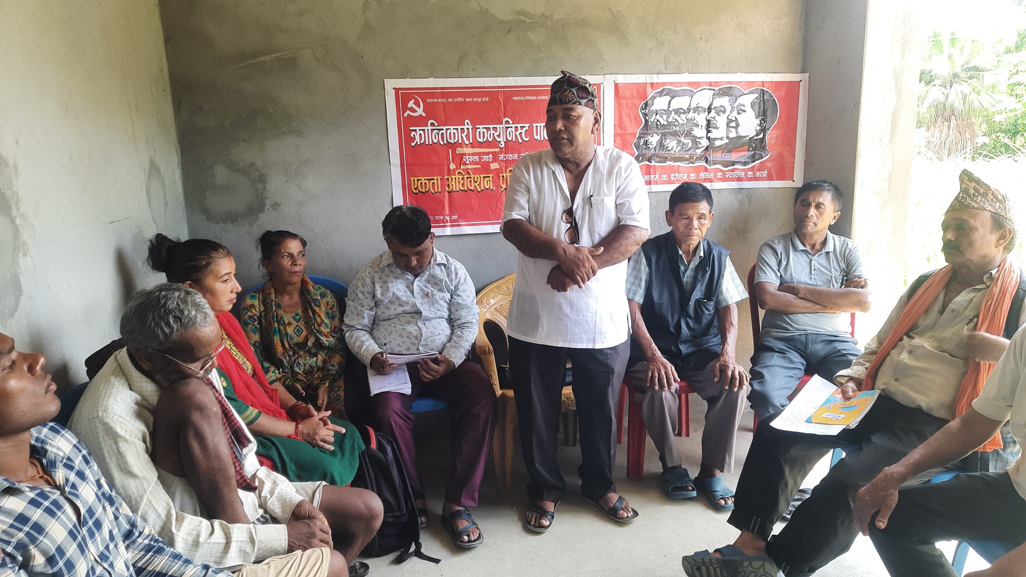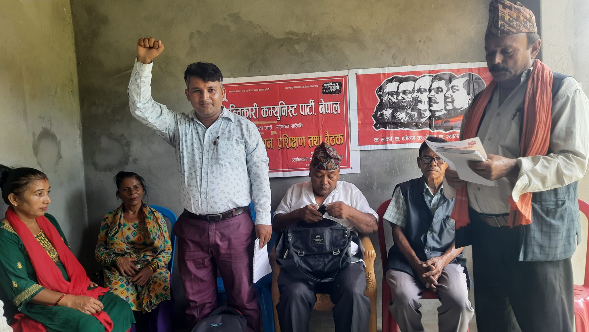 नवलपरासी (सुस्ता) – क्रान्तिकारी कम्युनिस्ट पार्टी,नेपाल सुस्ता गाउँ संगठन समितिको ऐतिहासिक एकता, अधिबेशन प्रशिक्षण तथा बैठक सुस्ता–१ फेचुवास्थित छघरिया बस्तीमा सोमबार सानदार रुपले सम्पन्न भएको छ ।