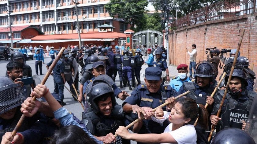 काठमाडौँ । मोहन वैद्य किरण नेतृत्वको क्रान्तिकारी कम्युनिस्ट पार्टी, नेपाल निकट विद्यार्थी संगठन अखिल (क्रान्तिकारी)ले जनविरोधी तथा प्रतिगामी शिक्षा विधेयक खारेजीको माग गर्दै सिंहदरबारको दक्षिणी मूलगेटमा विरोध प्रदर्शन गरेको छ । प्रदर्शनमाथि प्रहरीले हस्तक्षेप गरी १६ जना नेता कार्यकर्ताहरुलाई गिरफ्तार गरेको छ ।