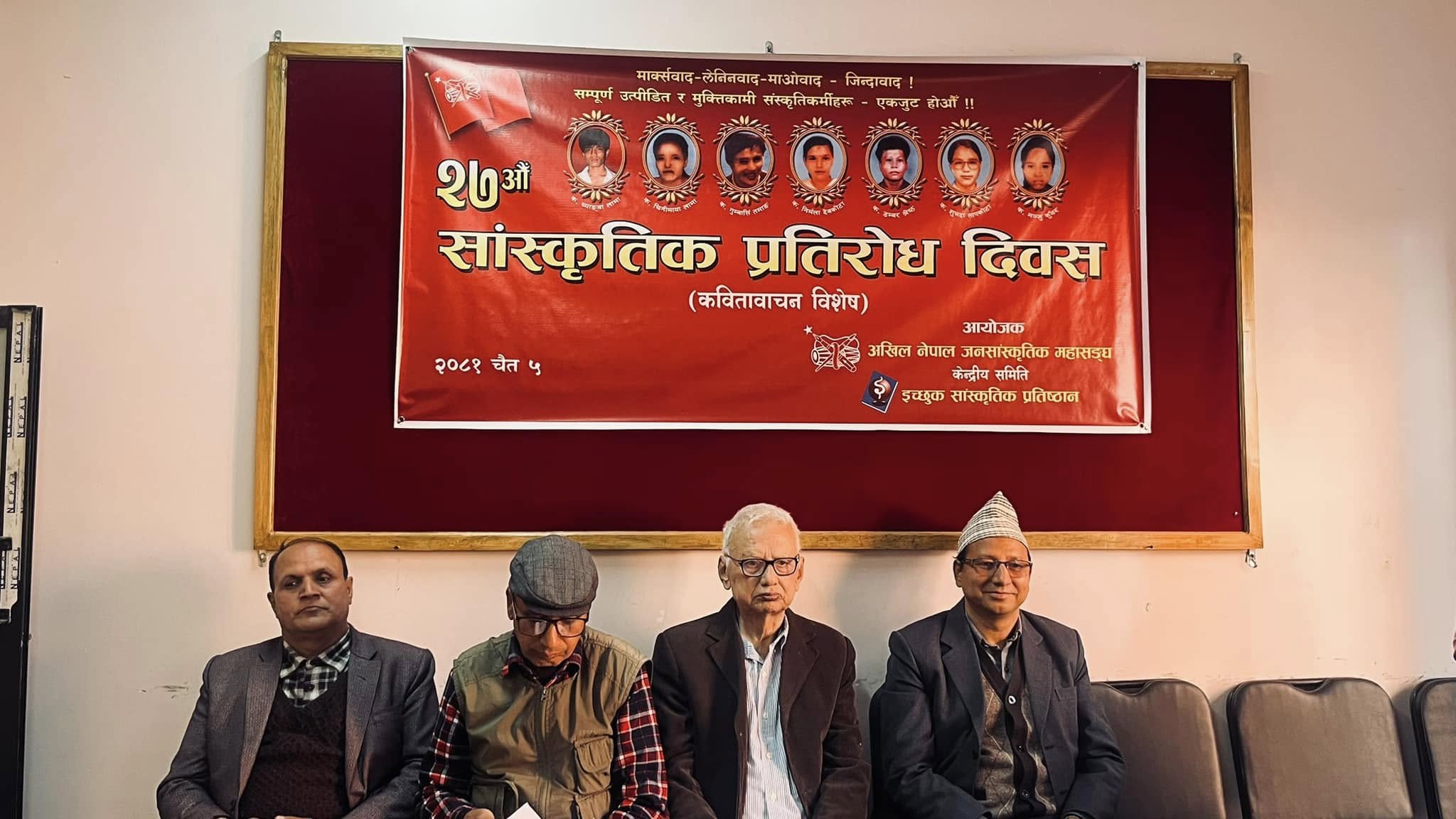 यसैबिच, इच्छुक सांस्कृतिक प्रतिष्ठान र जनसांस्कृतिक महासङ्घले संयुक्त रुपमा विशेष कविता गोष्ठीमार्फत् साँस्कृतिक प्रतिरोध दिवस मनाइरहेको छ । इच्छुक सांसकृतिक प्रतिष्ठानको सभाहलमा भएको कार्यक्रममा क्रान्तिकारी स्रष्टाहरुले आफ्ना काब्यिक रचनाहरु प्रस्तुत गरिरहेको प्रतिष्ठानका अध्यक्ष हिरामणि दुःखीले जानकारी दिनुभएको छ ।