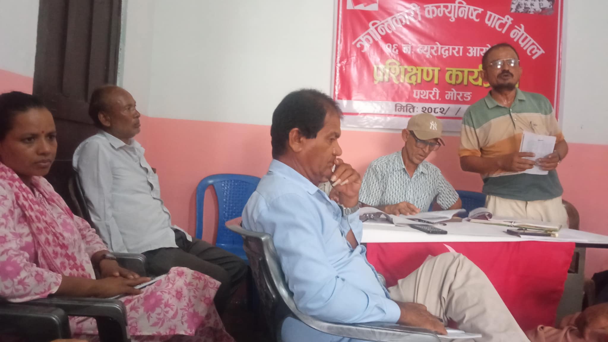 मोरङ । क्रान्तिकारी कम्युनिष्ट पार्टी नेपाल १६ नम्बर ब्यूरोले प्रशिक्षण कार्यक्रम सम्पन्न गरेको छ । पार्टीका स्थायी समिति सदस्य सन्त बहादुर नेपालीको प्रमुख आथित्यमा सम्पन्न भएको प्रशिक्षण कार्यक्रममा ब्यूरोमा आवद्ध पार्टीका जिल्ला सदस्यहरुलाई माहाधिवेशनबाट पारित विधान र दस्तावेजहरुमाथि प्रशिक्षण दिएको थियो ।
