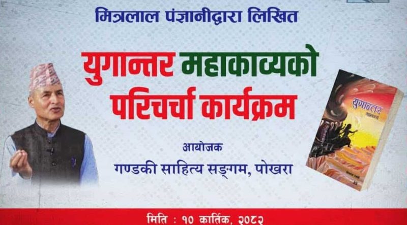 गण्डकी साहित्य सङ्गम, पोखराको आयोजनामा कवि मित्रलाल पंज्ञानीको महाकाव्य ‘युगान्तर’ विषयक परिचर्चा कार्यक्रम सम्पन्न भएको छ ।