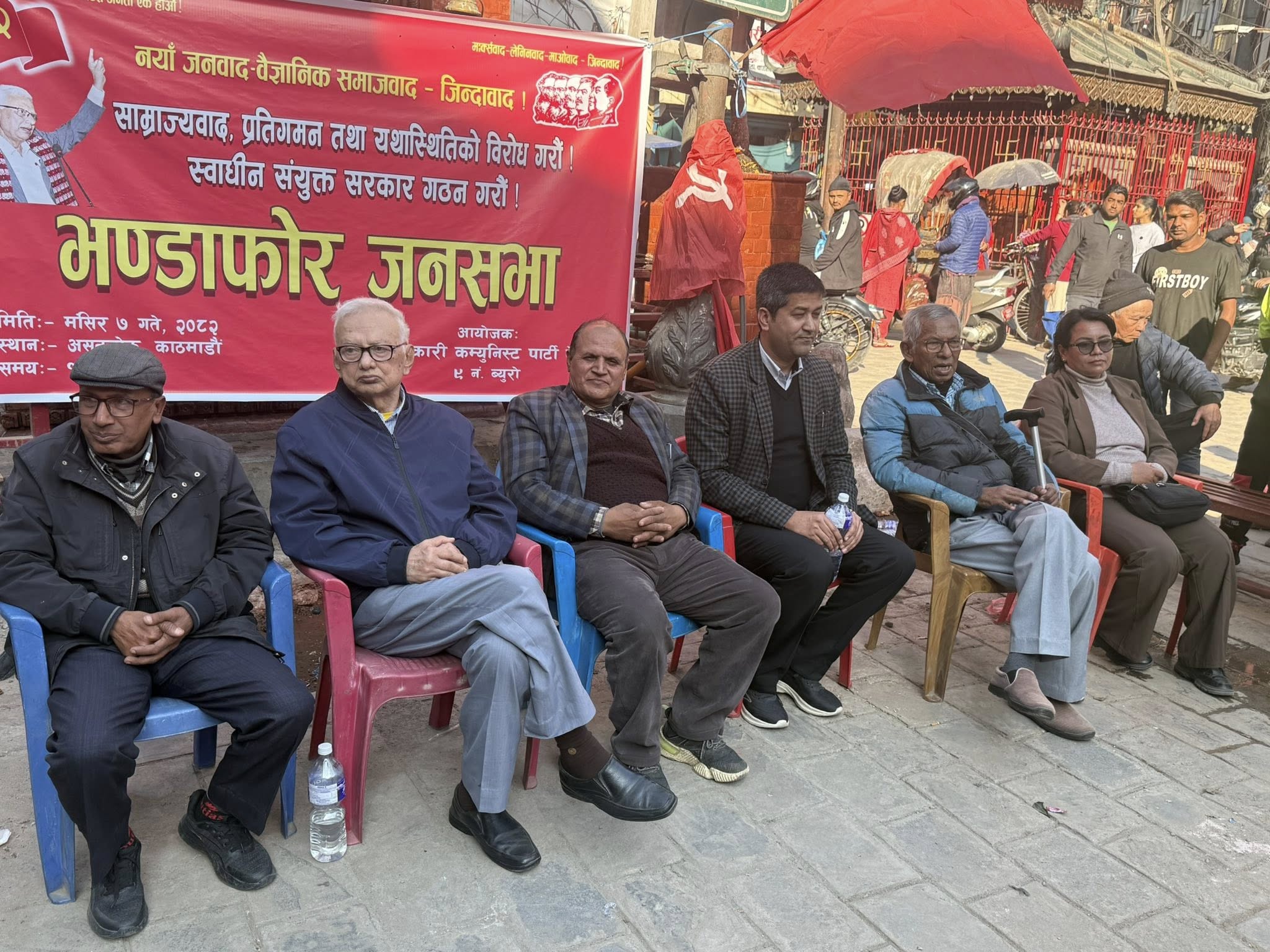 जनसभाको अध्यक्षता पार्टीका पोलिटब्यूरो सदस्य तथा ९ नं. ब्यूरोका सचिव चिन्तामणि पौडेल गर्नुभएको थियो भने कार्यक्रमको सञ्चालन पार्टी केस तथा काठमाडौंका सचिव केदार खतिवडाले गर्नुभएको थियो ।